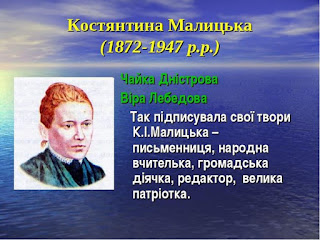 Костянтина Малицька. Вона прожила невсипуще, сповнене любові до свого народу життя. Всю себе присвятила школі. Тривалий час була вчителькою, директором школи. Своє серце віддала дітям.